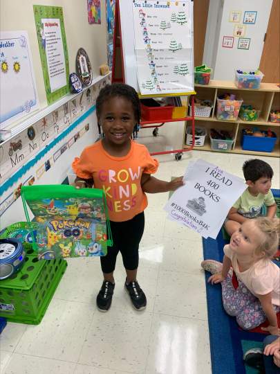 A one year grant provides students in Martin County Head Start and Title I voluntary pre-kindergarten classes the opportunity to participate in the 1000 Books Before Kindergarten program. Teachers read a minimum of five books a day to the students. The students tracked their reading in journals and with classroom wall displays. At major benchmarks on their way to reading 1000 books, the students are given prize books to take home and own for their family libraries.